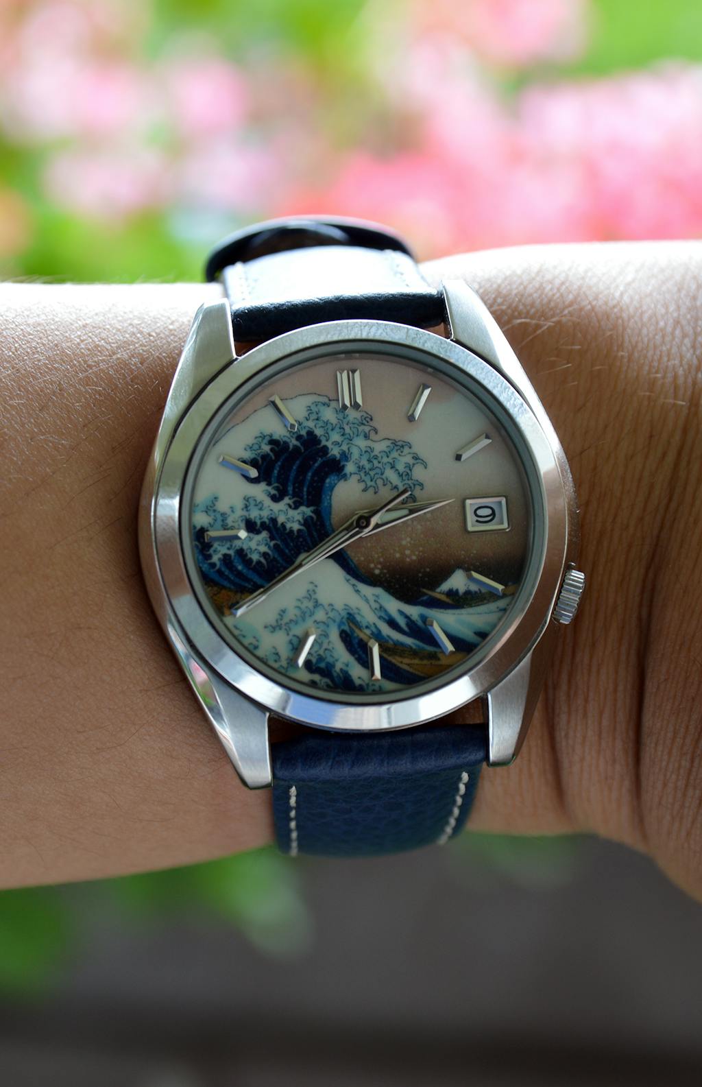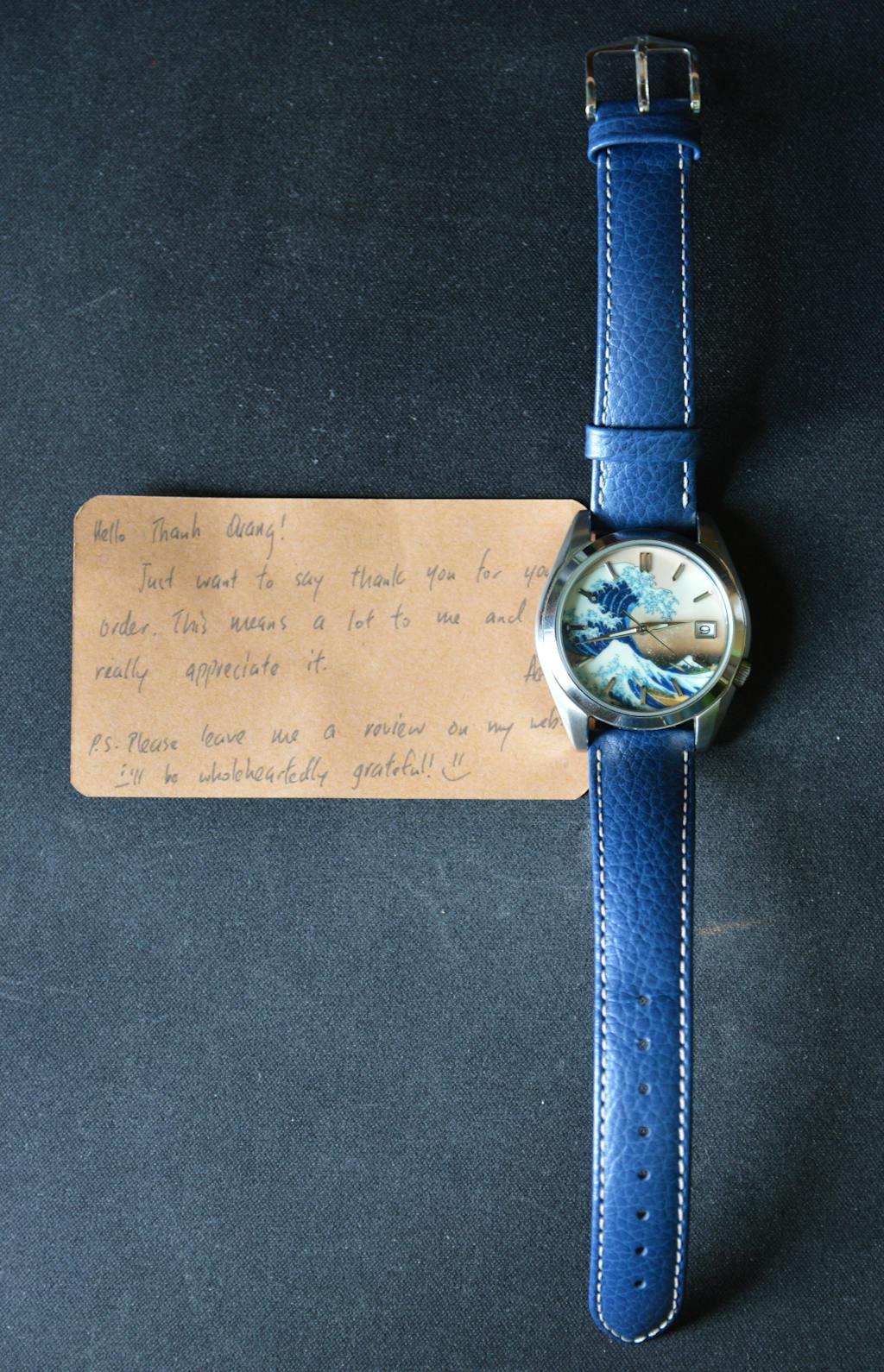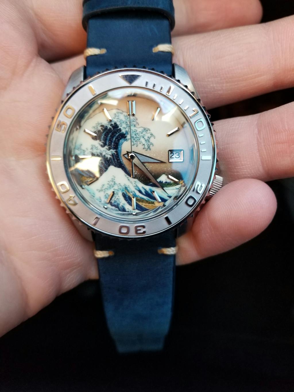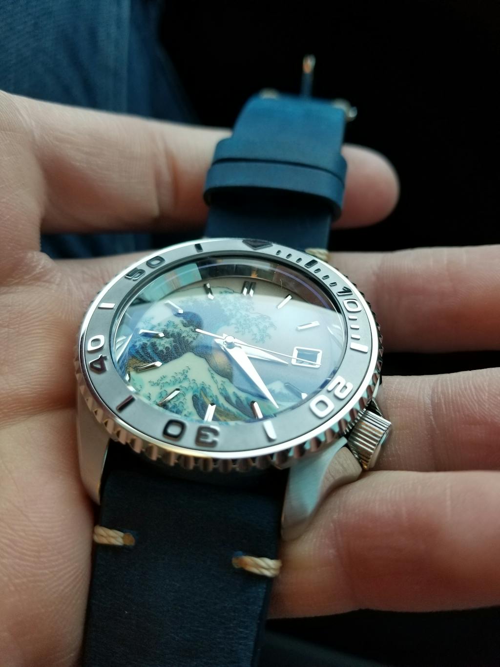 I told myself if I ever modified a watch I would want The Great Wave. I searched online for the best dial and after filtering through less than perfect offerings I found Lucius Ateliers iteration. At first I wasn’t sure how I felt about the orange peel texture, but it’s negligible and is beautiful once the crystal is pressed in. The BGW9 is breathtaking and can’t wait to show it off. I went for a classy theme and continued the Japanese theme by selecting kunai hands. Had the day date option been available I would installed a kanji date wheel. Thank you Lucius for being a part of first modification journey. God bless!