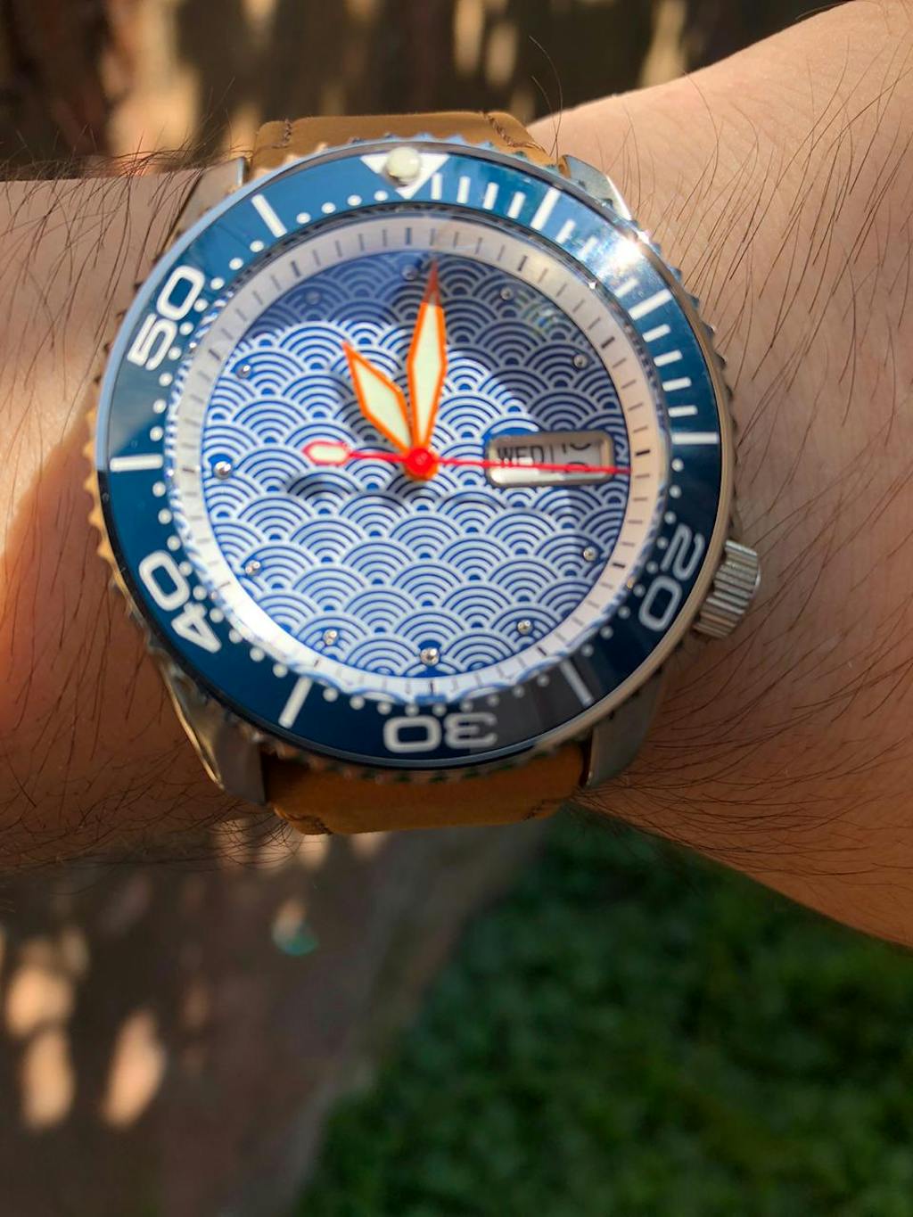 As a former watchmaking apprentice, I truly appreciate the craftsmanship put into this dial. The lume and texture is gorgeous and is versatile in terms of strap colors. Installing it myself brought the build to < $120 although it definitely looks 2-3x the price. The overseas shipping was fast/secure and the dials come with complementary finger cots. Customer service really gives you individualized attention and will answer any of your questions. I had also purchased the Great Wave dial and can’t wait to install that as well. Many thanks to Adriel and the team!