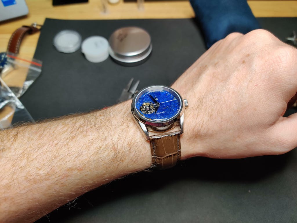 Great quality of work. Absolutely Stunning blue dial with specs. Awesome personalised thank you note. Quick shipping