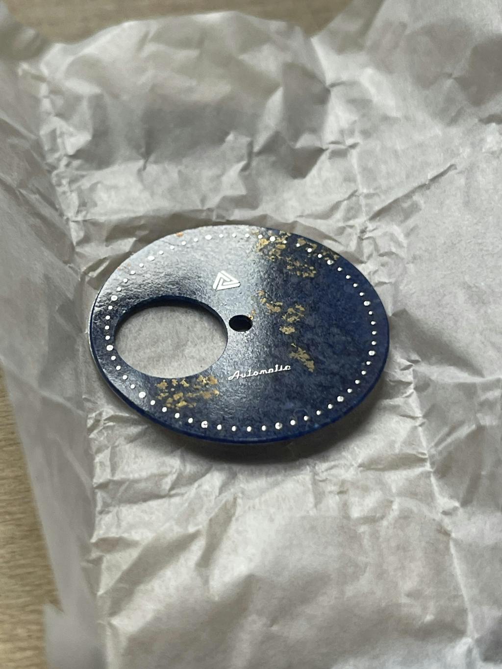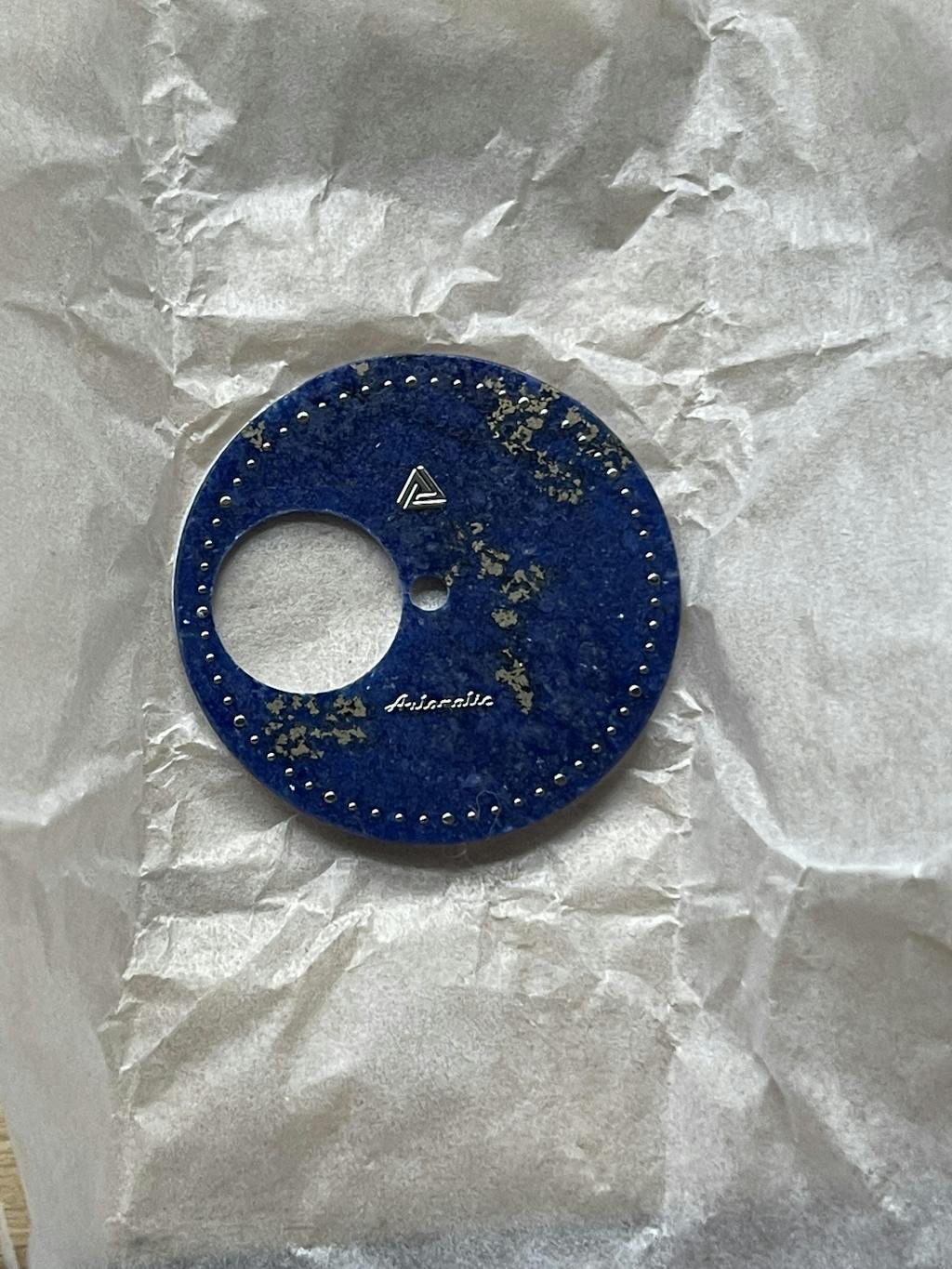 Note: Firstly, this dial is a pure lapis lazuli without brass base and legs. Therefore requires skilful dial/movement orientation. Included are adhesive rings to adhere precisely onto the movement's dial holding spacer. Secondly, minute markers are gently applied onto the dial with adhesive and will come off if touched. Please ensure you take great care when working with this dial and avoid touching the minute markers. Lastly, ensure caseback is not too tightly screwed down as the sandwich effect of the dial between the case and caseback can potentially crack the lapis lazuli gemstone. Due to difficulty working with this dial, this dial is ONLY recommended for professional watchmakers and highly skilled/experienced modders with great level of finesse.