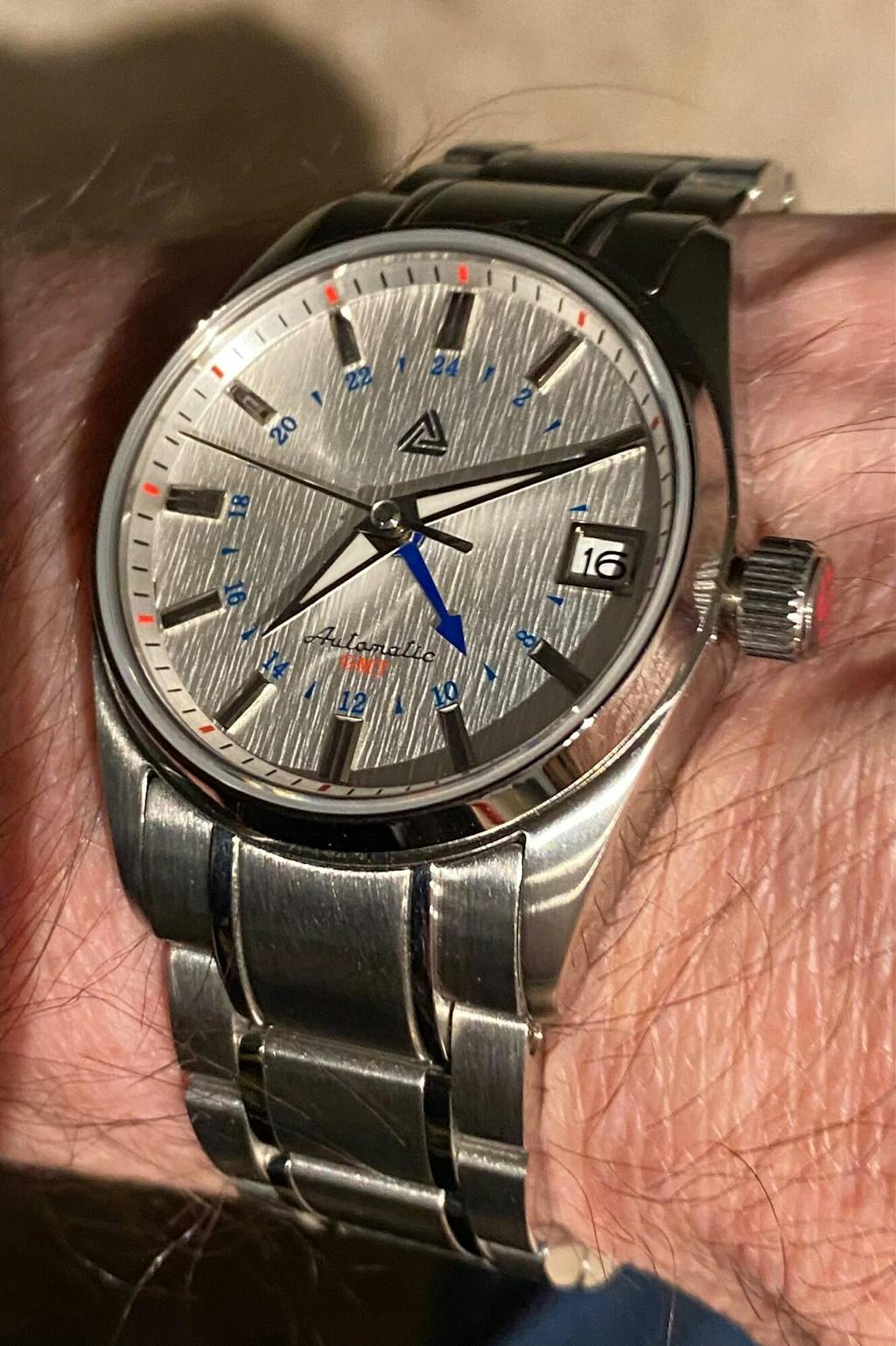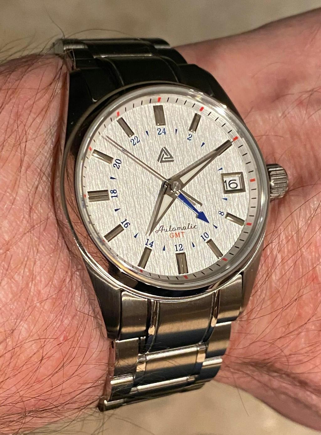 Adriel was very helpful answering all my questions - this was my first custom watch build and I had several. I was intreguied by the capability of having a automatic GTM watch in a slim case - and it turned out truly stunning! This started by selecting the snowflake dial, and grew from there. The subtle details are a joy to observe - the textures, colours, and robust feel of the compact package. I am very happy with this purchase.