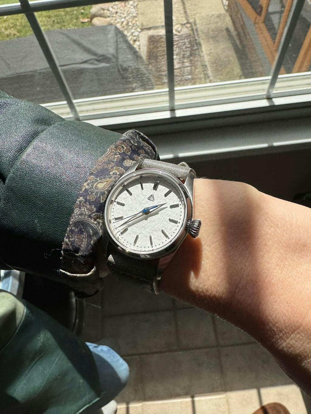 Forstner Klip bracelet and a quick release grey leather. UTE polished chapter ring, lume GS style hands with blue second hand, NH38 movement, and 7mm diamond crown. Adriel was great helping me select parts when I had questions. Took my time and was very careful with the minute markers.
