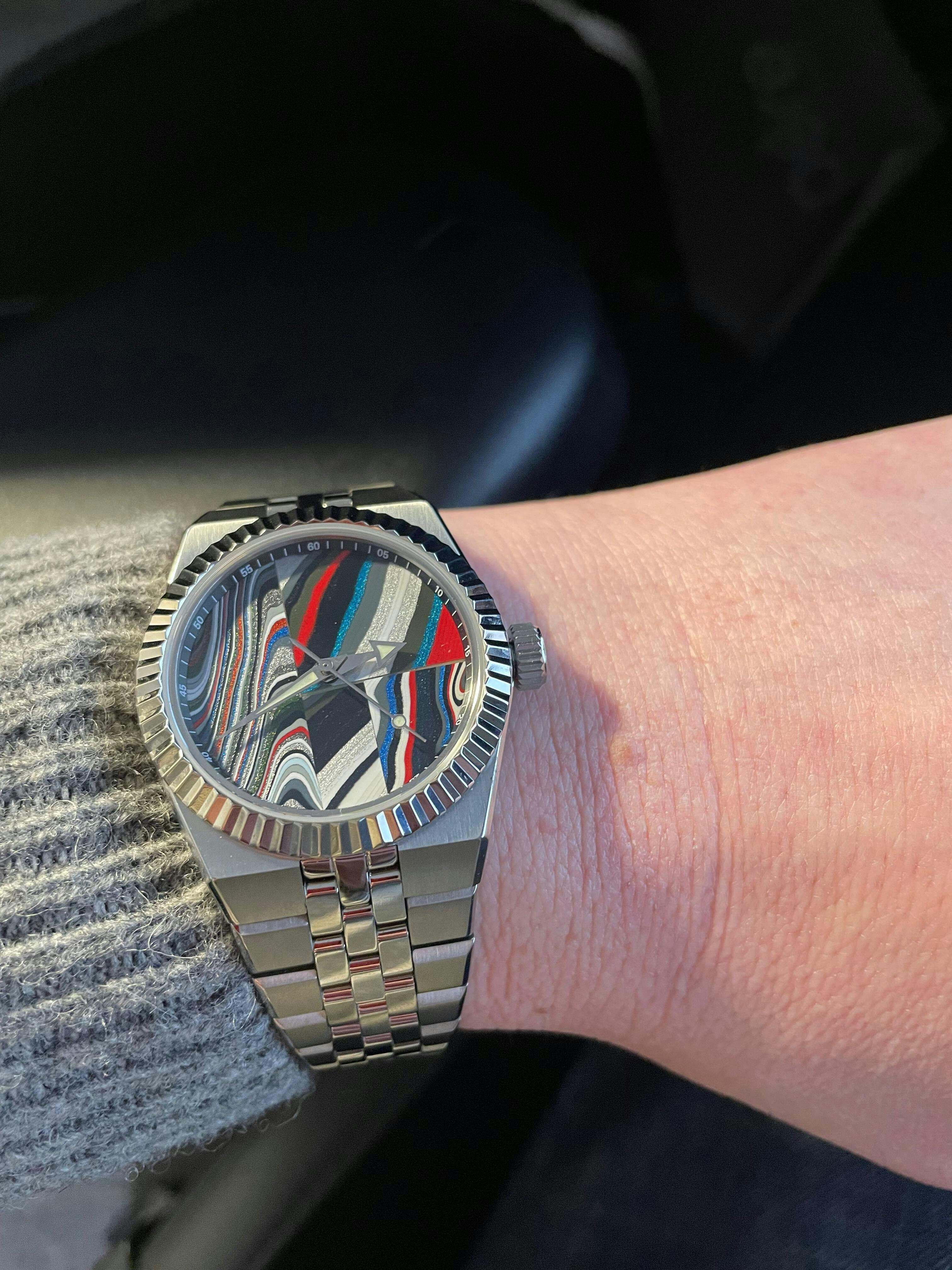 I absolutely love titanium and was looking for a sport/classy watch to round out of the titanium divers I have. This case came out to be 10.3mm thick and super easy to work with. The case work, polishing, and brushing is excellent and the bracelet is a dream! Articulation at the integrated case goes backward under so it works for smaller wrists. I was concerned about the 36mm but honestly on my 7.25” inch wears more like a 39mm. I hope they bring out more titanium thin cases like this in the future. Maybe a titanium yacht style diver. I would also love a few meteorite dial options. Lume is top notch as I am also a lume junky with the dive watches. Hits all the boxes for the premium price you get the ultra premium feel. Couldn’t find a sharp edge anywhere to note and had quite a few on a more expensive watch the week before.